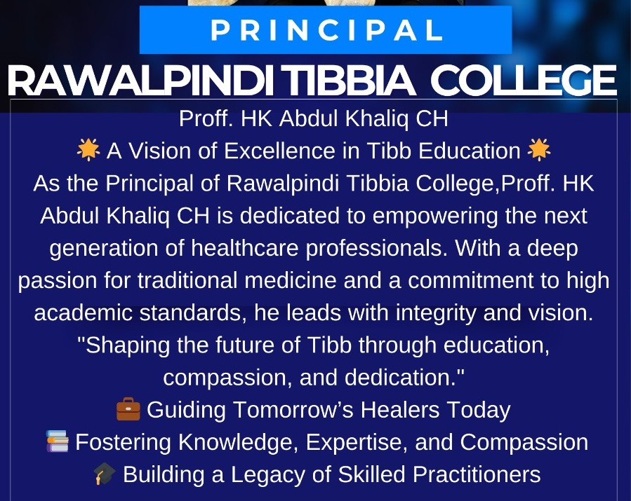 Welcome to the official website of Rawalpindi Tibbia College. As one of the leading medical institutions, the college is approved by National Council for Tibb , Ministry of Health, Government of Pakistan.